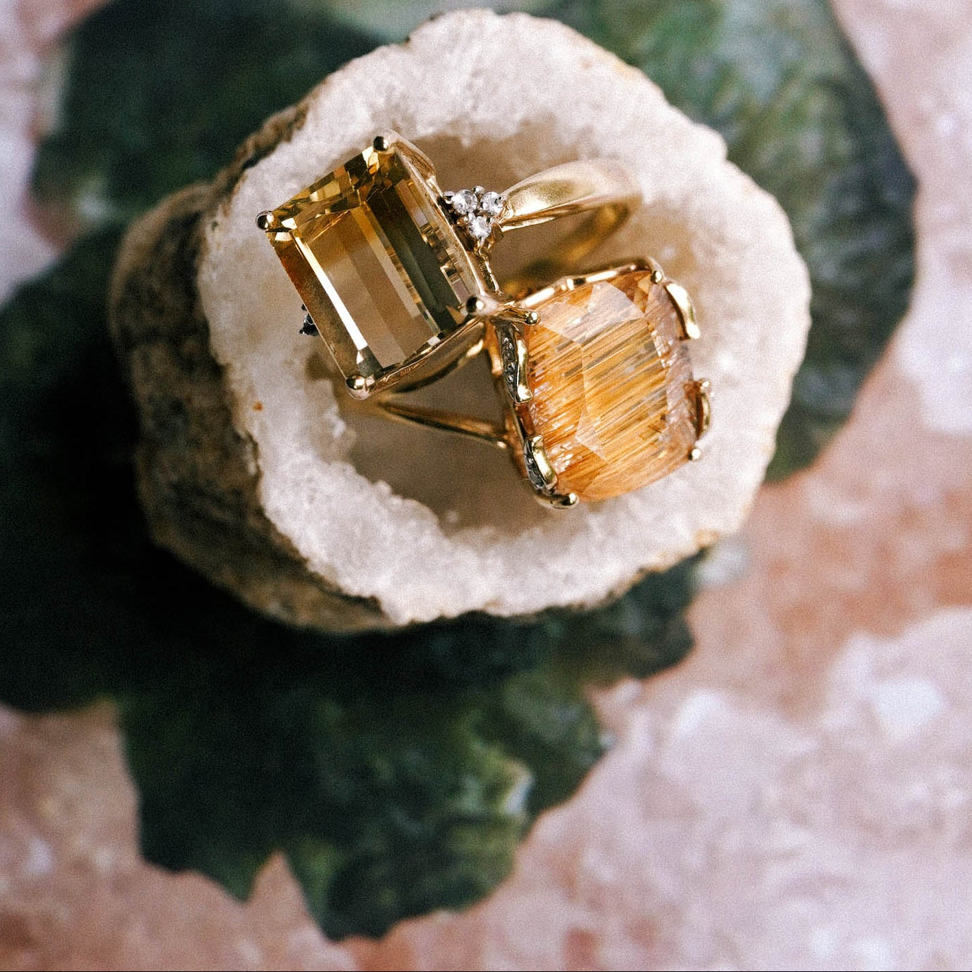 Nerina | Vintage Citrien & Diamant Solitaire Ring