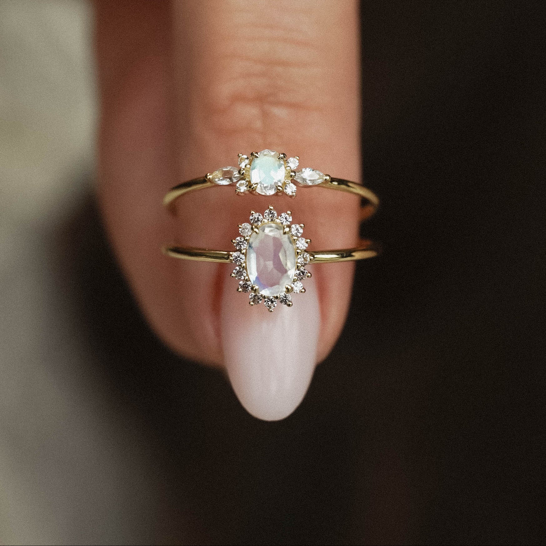 Hanna | 14K Blauwe Maansteen & Witte Saffier Cluster Ring