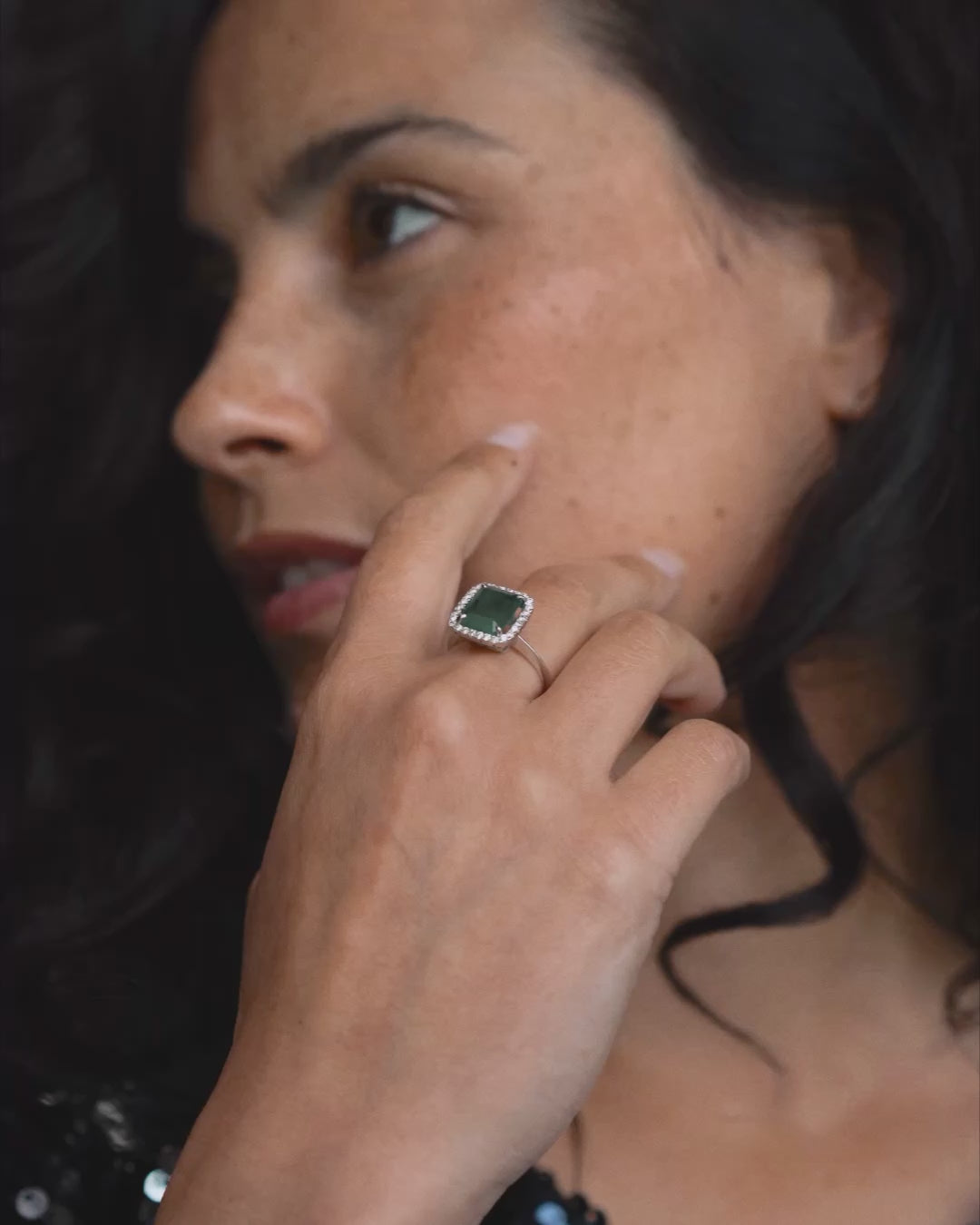 Novena | 14K Witgoud & Smaragd Cushion (3.4ct) Cut & Diamant Brilliant (0.28ct) Cut Ring