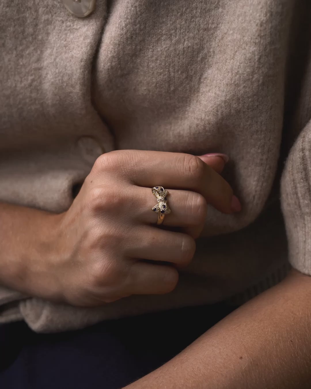 Suprisa | 14K Yellow Gold Brilliant (0.34ct) & Sapphire Bow Ring