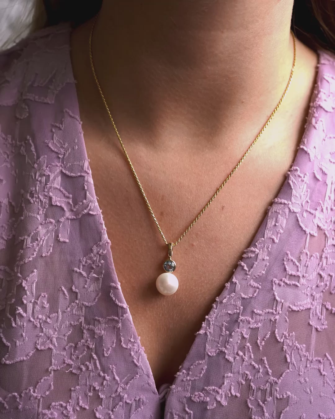 Alia | 14K Geel Gouden Zoutwater Parel & Aquamarijn Hanger