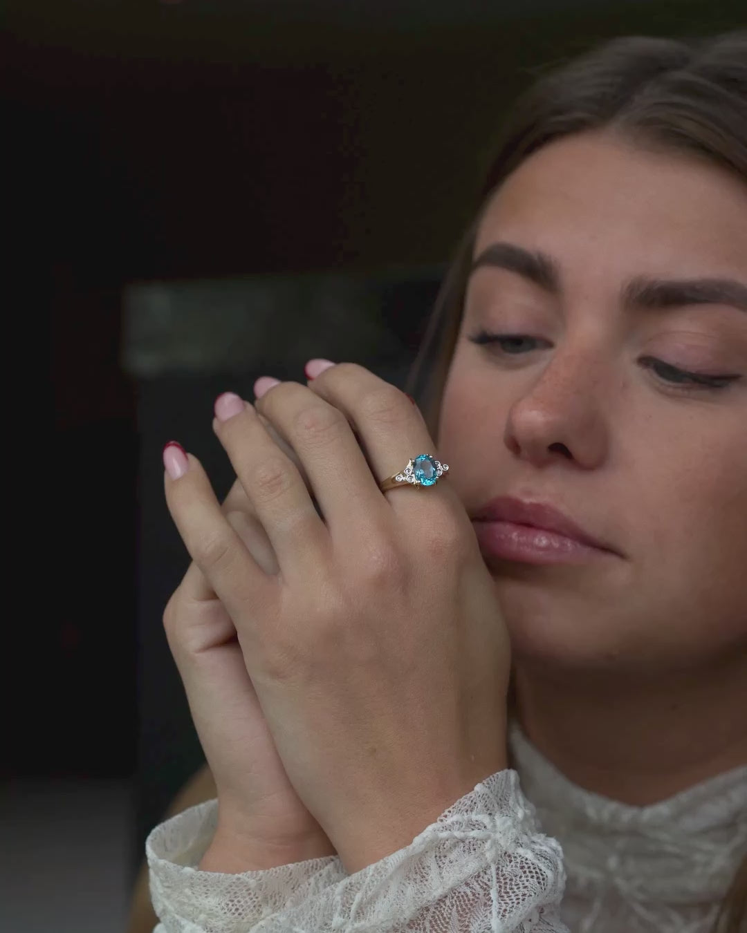 Iora | Vintage Blue Topaz and Diamond Solitaire Ring