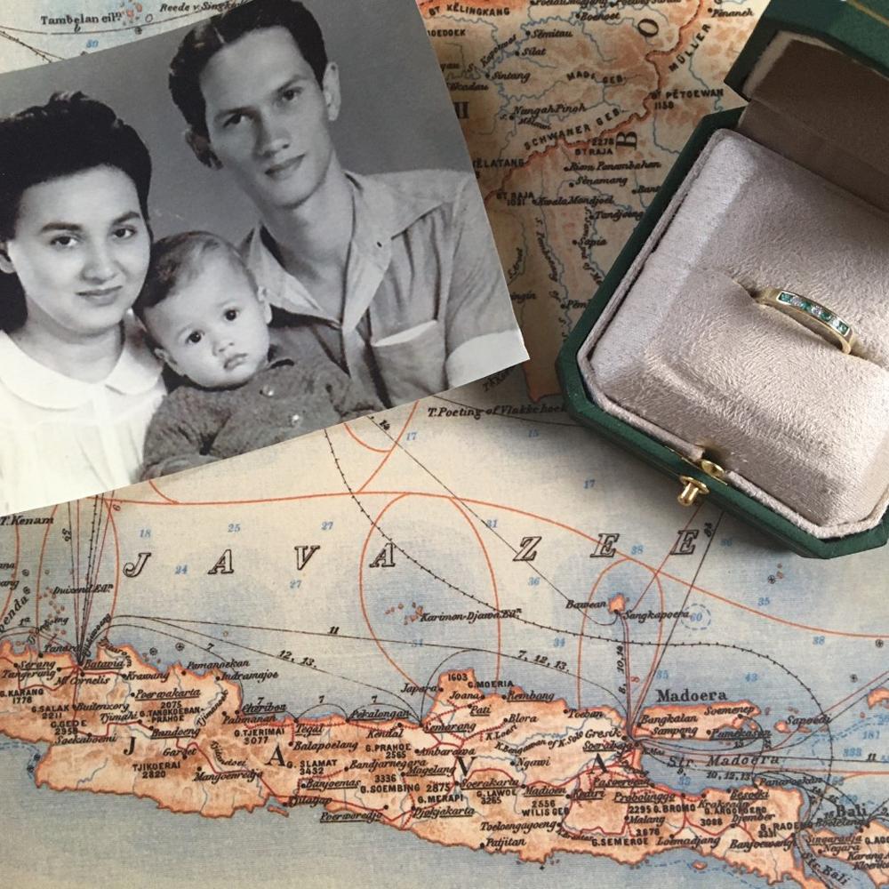 Ik ben al een tijdje op zoek naar een gouden eeuwigheidsring met Smaragden en Diamanten voor een tijdje. Ik heb Indo-Europees bloed via mijn moeders kant van de familie, en Nederlands Nederlands-Indië (het huidige Indonesië) stond vroeger bekend als de 'Gordel van Smaragd'. Ik wilde een vintage ring in plaats van een nieuwe ring; Een ring met een verhaal uit een vervlogen tijd.