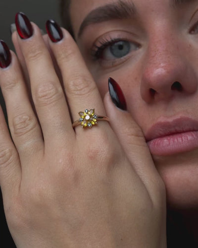 Safyra | Vintage Groene & Gele Saffier Cluster Ring