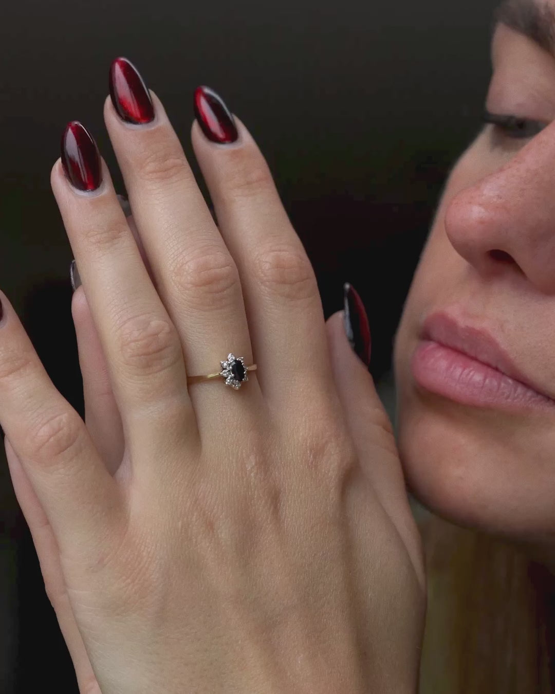 Saphyra | Vintage Saffier & Diamant Cluster Ring