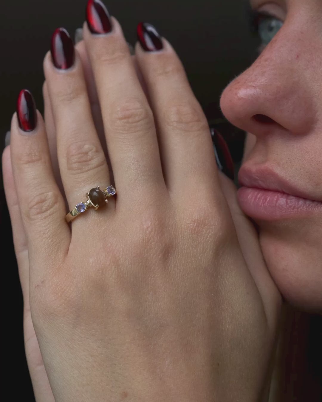 Tazeli | Vintage Carneool & Tanzaniet Three-Stone Ring