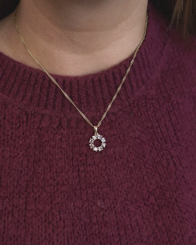 Een subtiel samenspel van licht en diepte — deze verfijnde hanger met glinsterende kwarts vangt de elegantie van eenvoud. De ronde vorm, omlijst door warme vintage tinten, straalt harmonie en tijdloze klasse uit. Perfect om solo te dragen of te combineren met andere kettingen voor een gelaagde, stijlvolle look.