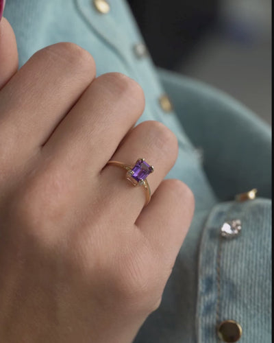 Calista | Vintage Amethist Solitaire & Diamant Details Ring