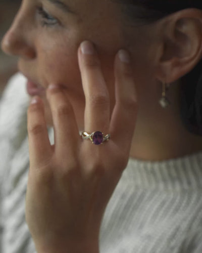 De Clarisse ring straalt vrouwelijke elegantie uit met haar sprankelende roze topaas als middelpunt. De levendige kleur van de steen, vol diepte en licht, wordt prachtig geaccentueerd door subtiele diamanten die langs het 9k montuur fonkelen. Deze solitaire ring is een verfijnd samenspel van zachtheid en luxe, perfect voor wie houdt van een sierlijk en romantisch statement. Dit bijzondere stuk werd met de hand uitgekozen bij een van de juweliers uit Menina’s wereldwijde netwerk, en is nu aangekomen in Amsterdam, klaar om een nieuw verhaal te beginnen met zijn toekomstige eigenares.