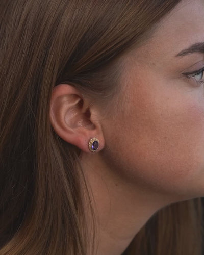 Diep paars met een koninklijke glans — deze verfijnde oorbellen brengen de mysterieuze schoonheid van amethist tot leven. De ovale stenen worden omringd door een sierlijke rand die hun kleur nog intenser laat stralen. Een klassiek paar dat elegantie en dromerige luxe verenigt, perfect voor elke gelegenheid waarin een vleugje verfijning gewenst is.