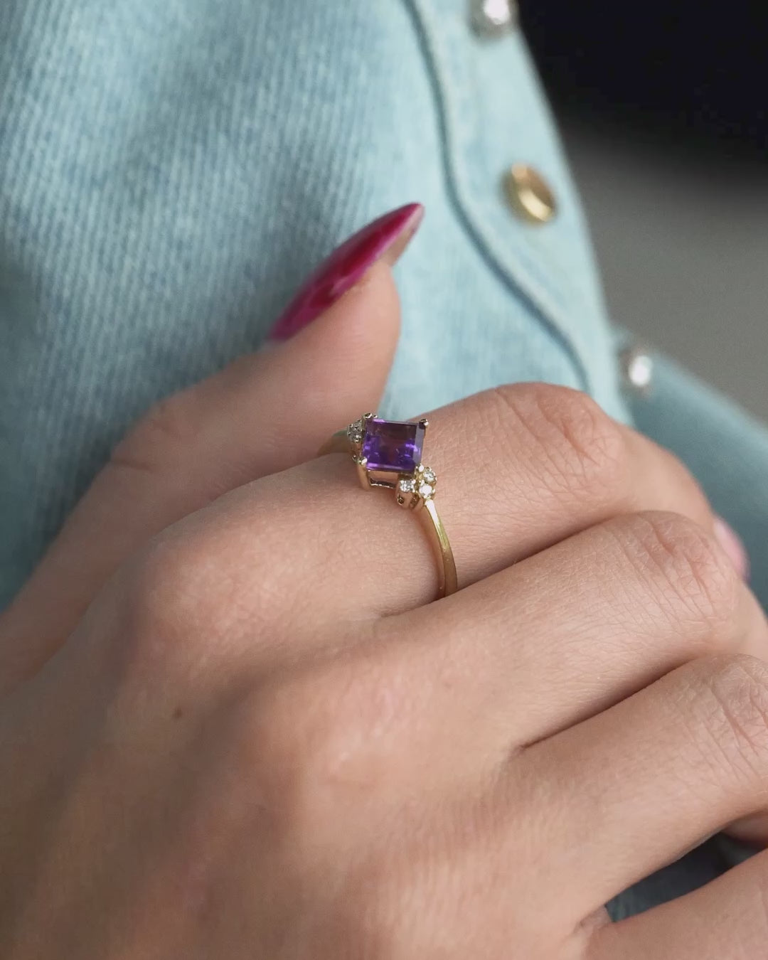 Esmeralda | Vintage Amethist Solitaire & Diamant Details Ring