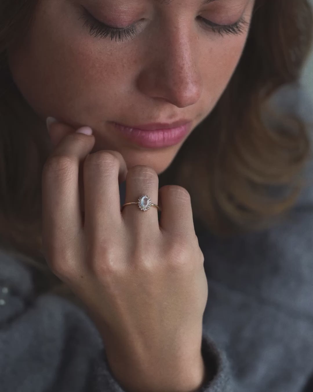 Hanna | 14K Blauwe Maansteen & Witte Saffier Cluster Ring Aanbiedingsprijs€507,00 Normale prijs€674,00