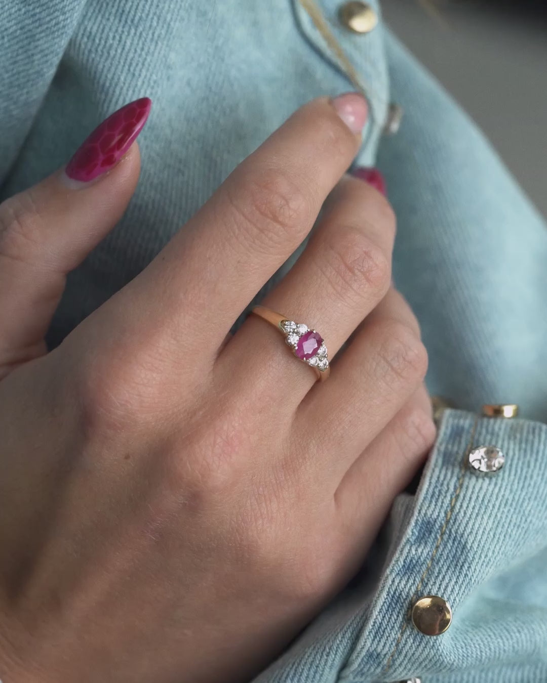 Isadora | Vintage Robijn Solitaire & Witte Saffier Details Ring