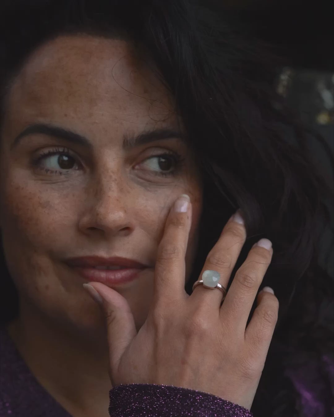 Liora | 14K Witgoud & Maansteen (6ct) Cushion Cut Ring