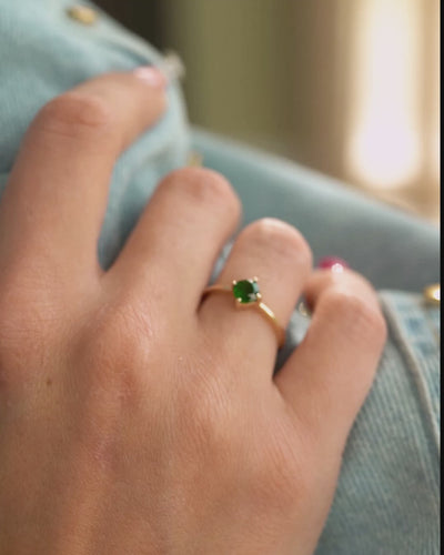 Deze elegante vintage ring is bezet met een diepgroene diopsiet die een frisse en levendige uitstraling geeft. De steen is gezet in 9 karaat en vormt een verfijnd middelpunt met een tijdloze en subtiele charme. Dit bijzondere stuk is met zorg gevonden en met de hand geselecteerd via ons wereldwijde netwerk van juweliers. Na een prachtige reis naar Amsterdam is deze ring nu klaar om een nieuw verhaal te beginnen.