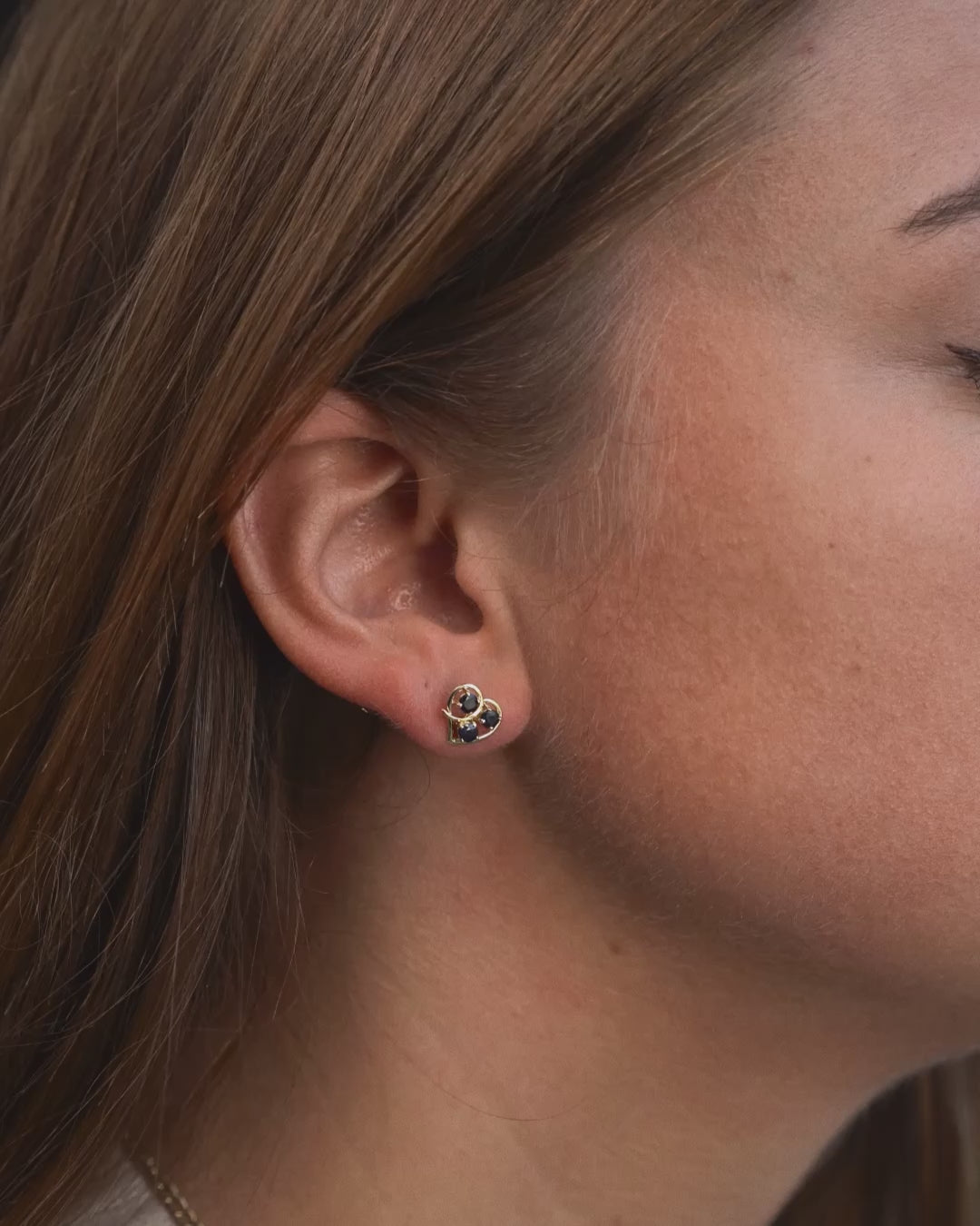 Deze charmante oorbellen stralen romantiek uit met hun diepblauwe saffieren in hartvormige zettingen. De glans van de stenen vangt het licht subtiel, terwijl de sierlijke vintage afwerking het paar een klassieke, dromerige allure geeft. Een teder detail dat elegantie en symboliek op een tijdloze manier verenigt.