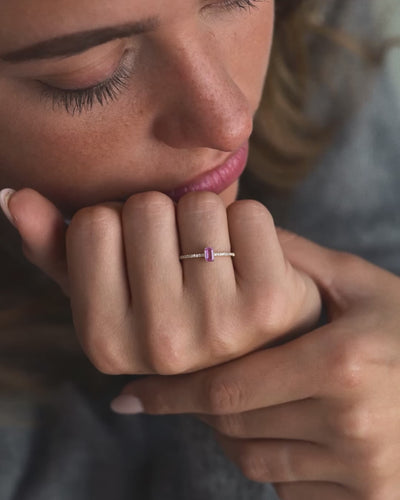 Seraphine | 14K Roze Baguette Saffier & Diamant Pavé Ring