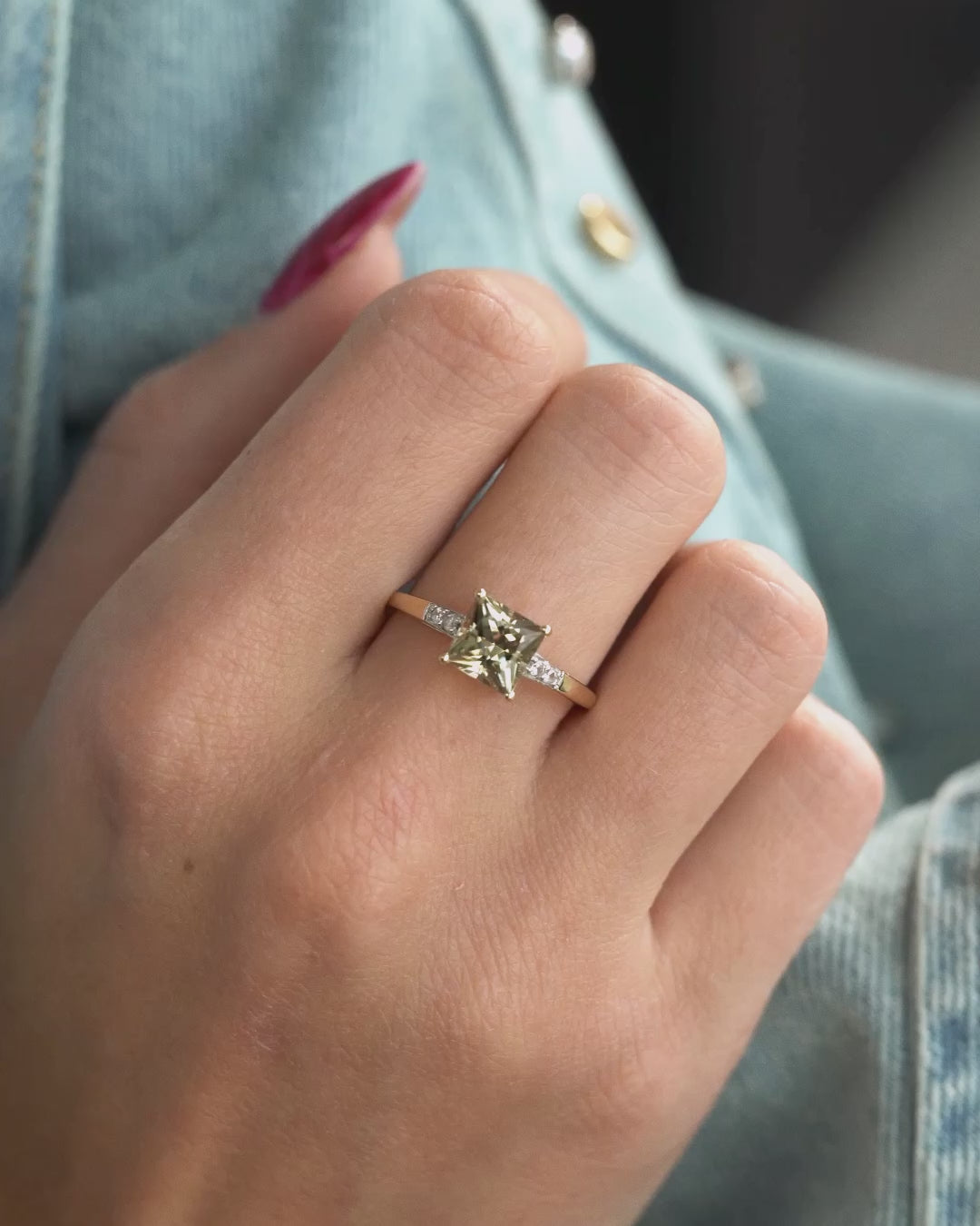 Victoria | Vintage Groene Amethist & Witte Saffier Ring