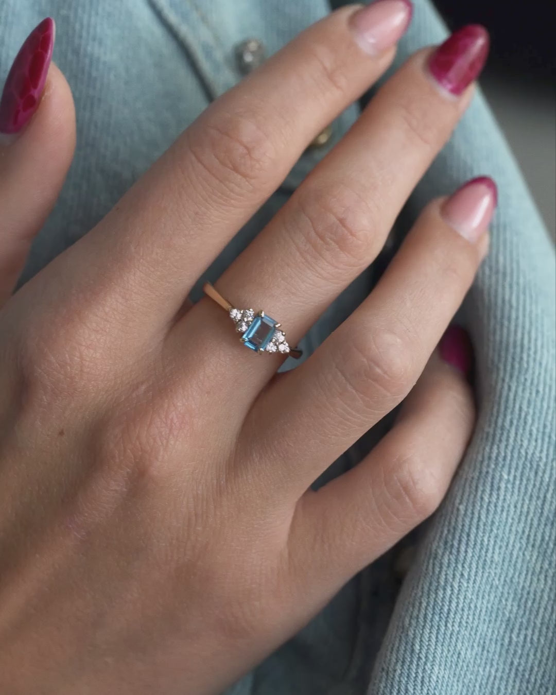Deze verfijnde vintage ring combineert de frisse, lichtblauwe schittering van topaas met de subtiele fonkeling van witte saffier, wat zorgt voor een elegant en sprankelend geheel. De stenen zijn gezet in 9 karaat en geven het ontwerp een tijdloze uitstraling met een zachte, vrouwelijke charme. Dit bijzondere stuk is met zorg gevonden en met de hand geselecteerd via ons wereldwijde netwerk van juweliers. Na een prachtige reis naar Amsterdam is deze ring nu klaar om een nieuw verhaal te beginnen.